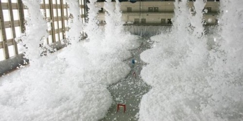 وكالات - الاقتصادي - في مشهد مدهش، غطى بساط واسع من الرغوة البيضاء شارعاً بأكمله وسط مدينة فيلادلفيا الأمريكية عقب انفجار وقع بعد ظهر السبت في أحد المباني.