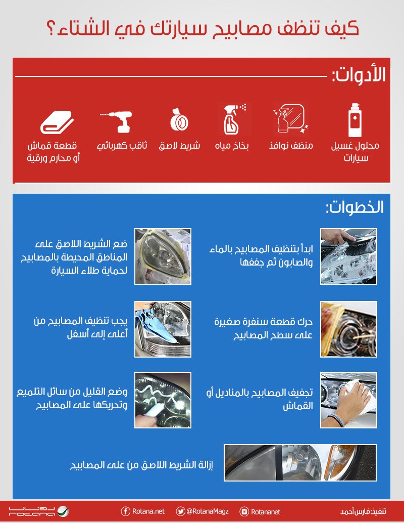 وكالات - الاقتصادي - نشر موقع روتانا صوراً اوضح فيها للسائقين كيفية تنظيف مصابيح السياراة في فصل الشتاء بالطريقة الصحيحة.