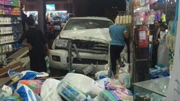 وأظهر مقطع الفيديو الذي وثقته كاميرا المراقبة داخل الصيدلية، رجل يقف ويتحدث مع الموظف قبل أن يبتعد عنه الموظف ليغير الرجل مكان وقوفه للجهة الأخرى، وفجأة اقتحمت سيارة نفس المكان الذي كان يقف فيه؛ حيث كادت تدهسه لولا أنه غير مكان وقوفه.