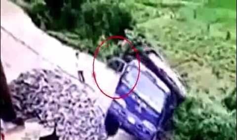 ولم يكن السائق ليختار توقيتاً أفضل للقفز من الشاحنة، فلو تأخر جزءاً من الثانية، لانهارت به في الوادي، لكنه وصل إلى بر الأمان دون أن يصاب بأي أذى.
