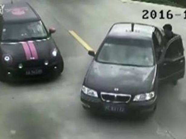 شاهد.. رجل يحاول إيقاف سيارته فيحدث ما لم يتوقعه!