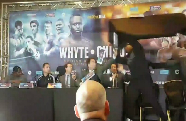 وخلال المؤتمر الصحفي لنزال البريطانيين ديريك تشيسورا وديليان وايت، قام الأخير بتهديد حياة خصمه ليثير غضبه حيث قام تشيسورا بحمل الطاولة ورميها على وايت.