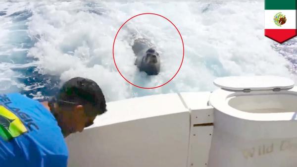 بالفيديو: حيوان فقمة يقتحم قارباً سريعاً بحثاً عن السمك