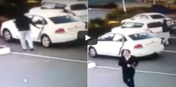 وفي بداية الفيديو تظهر سيارة تقودها سيدة، وهي تقترب من موقف للسيارات، وفي نفس الوقت كان رجل يتبعها إلى أن استقرت السيارة في الموقف. وفي اللحظة التي فتحت فيها السائقة الباب الأمامي لتخرج، فتح اللص الباب الخلفي دون أن يحدث أية ضجة.