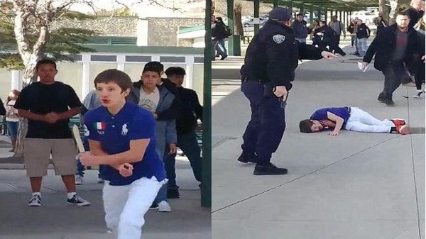 ولكي يكبح جماحه قام ضابط شرطة يعمل بالمدرسة بإطلاق النار عليه، ليقع الطالب طريح الأرض وينقل في حالة حرجة إلى مستشفى رينو.