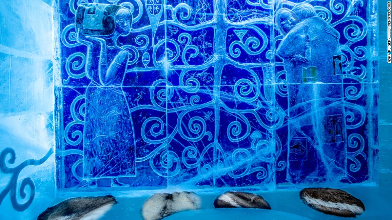 وقد استُخدمت 800 شاحنة محملة بالثلج و5 آلاف طن من الجليد لبناء الفندق المؤلف من عشرة أجنحة فاخرة، بالإضافة إلى بار ومعرض فنون.
