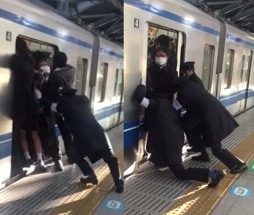 وكالات - الاقتصادي - ظهر مقطع فيديو لمصور إيطالي في اليابان عمال محطة مترو طوكيو، وهم يجبرون الركاب على دخول القطار للسماح بالأبواب بالإغلاق.