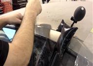ومن ثم أدخل المفك عبر القماش ما بين الباب والسقف، وعند إيجاد فراغ قام بإدخال الوسادة الهوائية وبدء في ملئها بالهواء حتى اتسعت الفتحة وصارت قابلة لإدخال سيخ حديدي يصل إلى مفتاح إغلاق وفتح الباب.