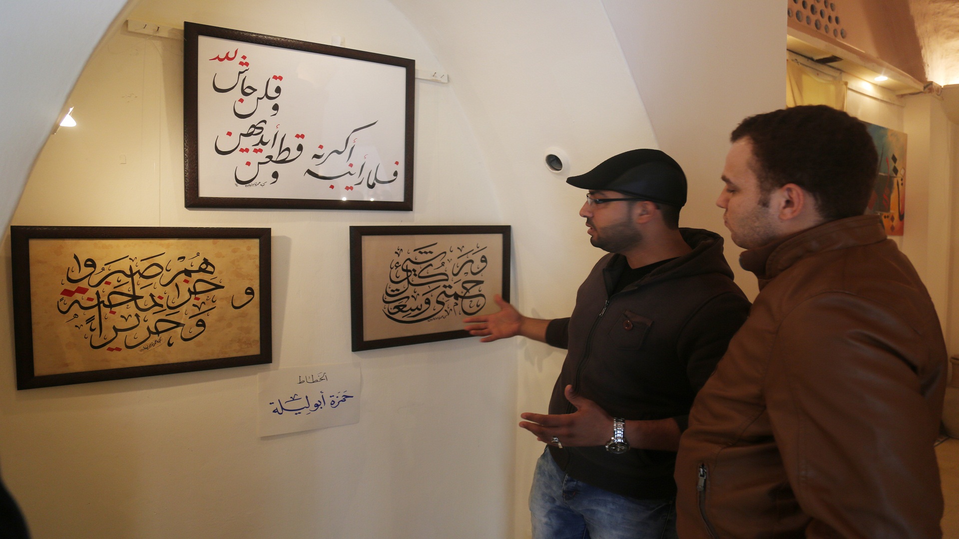 وخلال جولة في المعرض الذي ضم عشرات اللوحات متباينة الأشكال والألوان، التقى "العربي الجديد" عدداً من الخطاطين والفنانين المشاركين، وأوضح الخطاط وائل أبو غبن أنه شارك بثلاث لوحات، لوحتين بالخط الديواني، وثالثة بالخط الفارسي.