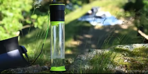 بإمكان الزجاجة المزودة بشريحة طاقة شمسية أن تنتج نصف لتر من المياه فى ساعة.