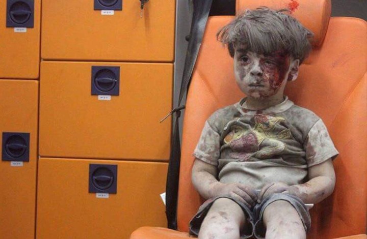 الطفل السوري عمران وجلسته الشهيرة بعد انتشاله من تحت الأنقاض جراء قصف حلب