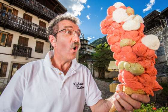 لقد أُعدّ في إيطاليا واحتوى على 121 كرة آيس كريم متراكمة.