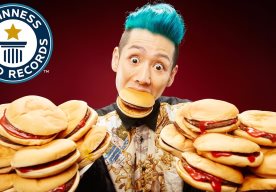 اسم تاكيرو مسجل فى موسوعة جينيس للأرقام القياسية العالمية باعتباره الإنسان الوحيد القادر على تناول تلك الكمية من سندوتشات البرجر فى 3 دقائق فقط.
