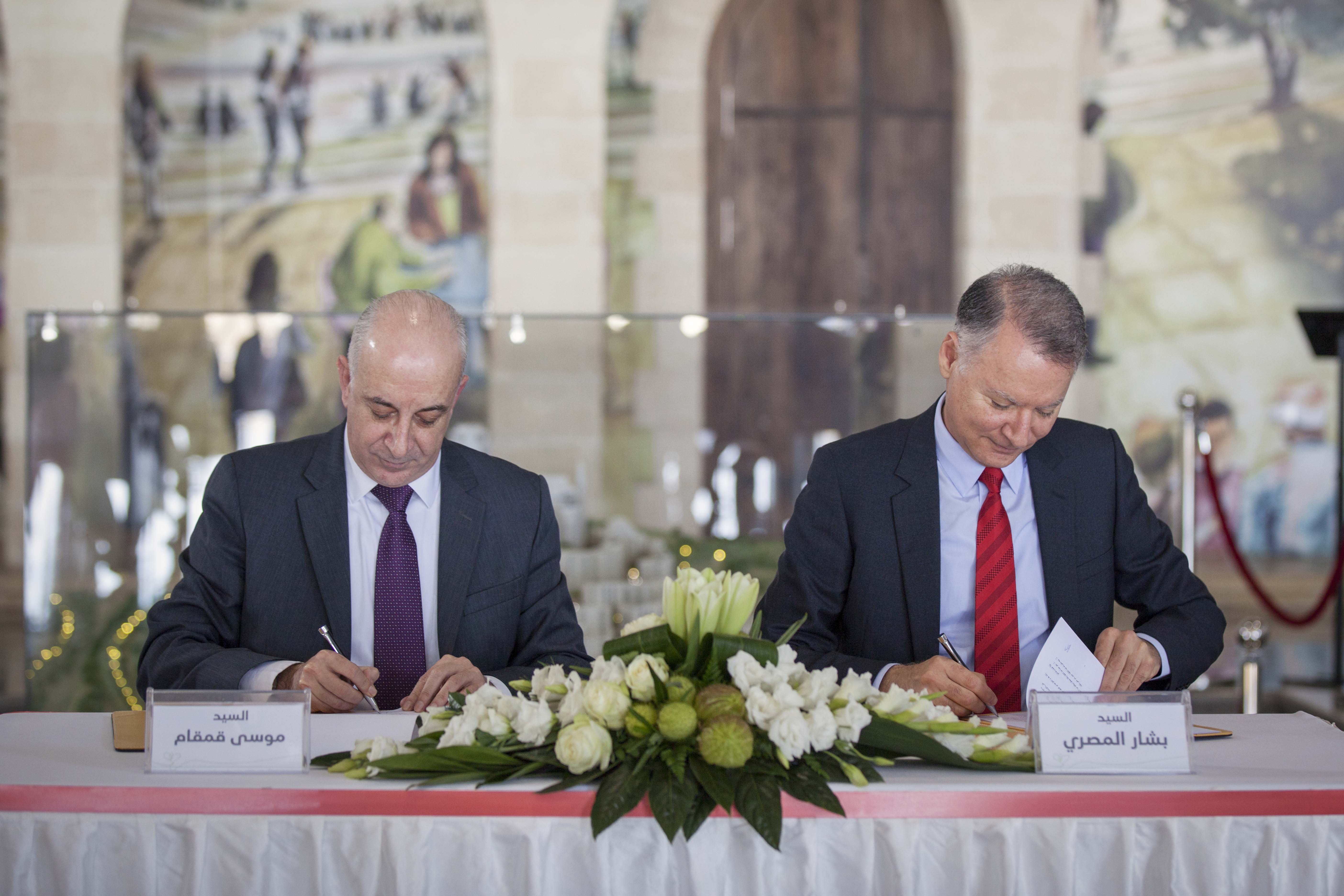 مدينة روابي - الاقتصادي - وقع المدير الإقليمي للبنك الأهلي الأردني لفروع فلسطين موسى قمقام،إتفاقية تعاون مع بشار المصري رئيس مجلس إدارة شركة مسار العالميةممثلا عنمدينة روابي، اليوم الأربعاء الموافق