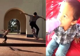 شاهد .. طفل يمارس التزلج قبل إتمام رضاعته