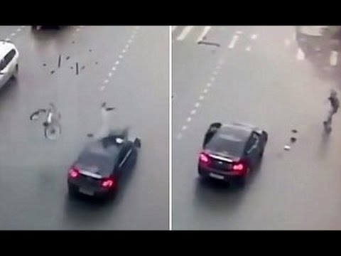 وكالات - الاقتصادي - نجا سائق دراجة روسي بأعجوبة، بعد أن صدمته سيارة وهو يحاول الاستدارة على الطريق بشكل غير قانوني، وقذفت به في الهواء بعيداً عن دراجته.