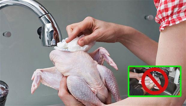 فقد أكد الدكتور راشيل يونغ دكتور التغذية بجامعة دراكسيل حيث أكد أن عسل الدجاج بالماء ضار جدا وخطير للغاية حيث أن عند غسل الدجاج بالماء فإن البكتريا الموجودة في الماء وفى يد الإنسان تتجمع على جلد الدجاج خصوصا وأن الماء الذى يتم غسل الدجاج به ليس ساخن بما يكفى ليقتل تلك البكتريا بالعكس فهو يزيد من انتشار البكتريا.