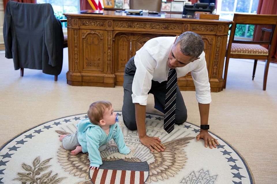 كما كانت لأوباما مجموعة كبيرة من الصور مع عدد من الأطفال الصغار، معظمهم من أبناء موظفي البيت الأبيض.