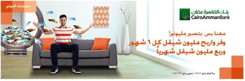 رام الله - الاقتصادي - ضمن استراتيجيته الهادفة إلى التميّز في تقديم الخدمات والمنتجات المصرفية، وتقديرا لثقة عملائه وتلبية لاحتياجاتهم وتطلعاتهم، أطلق بنك القاهرة عمان حملة جديدة لجوائز حسابات التوفير تستهدف عملائه في فلسطين، وتأتي الحملة تحت شعار "معنا بس، بتصير مليونير!" للتأكيد على قيمة هذه الجوائز، حيث سيتم السحب على الجائزة الكبرى وقيمتها مليون شيقل مرتين خلال العام في (أول شهر تموز 2017، وأول شهر كانون الثاني 2018)، بالإضافة إلى جائزة شهرية قيمتها ربع مليون شيقل، يتم السحب عليها كل أول شهر.
