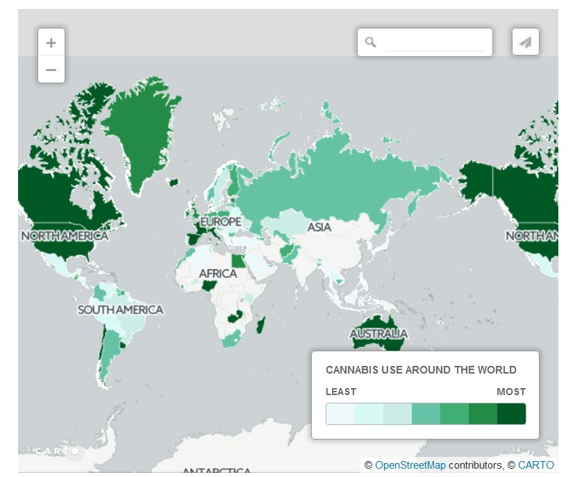 وتشير الإحصائية إلى أن أيسلندا تمتلك النسبة الأكبر على الإطلاق، إذ يستخدم 18% من السكان أحد أشكال القنب.