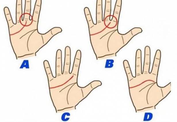 وكالات - الاقتصادي - راقب الخطوط في كف يدك جيداً وتأمل خط الحياة (المرسوم باللون الأحمر في الصور). اختر الشكل الأقرب إلى كف يدك وانتقي الإجابة التي ستدلّك على صفات شخصيتك.