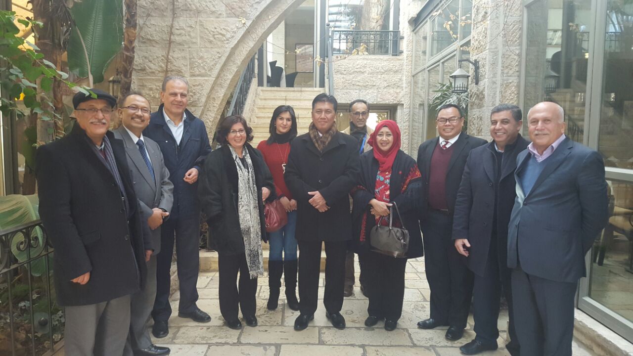 و تم الترحيب بسعادة السفير والوفد المرافق في فلسطين و شكره على الجهود المكثفة التي يتم بذلها لتوثيق العلاقات الفلسطينية الإندونيسية في مختلف المجالات خلال فترة خدمته كسفير والمنتهية في نهاية كانون الثاني الحالي ومتمنين له مزيداً من التقدم والنجاح في مسيرته اللاحقة واستمرار التعاون المستقبلي من خلال موقعه الجديد في وزارة الخارجية الإندونيسية في جاكارتا.