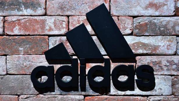 اسم أديداس مشتق من إسم مؤسها، أدولف داسلر. وقد تغير لوغو الشركة على مر الزمن ولمرات عدة، لكنه احتوى دائما الخطوط الثلاثة المائلة. هذه الخطوط تشكل مثلثا يرمز الى جبل، وهو يرمز بدوره الى التحديات التي يتعين على كل الرياضيين قهرها.