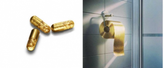 "Tobias Wong" قام بصنع حبوب معبأة بألياف ذهبية (24 قيراطاً) لديها مقدرة على تحويل البراز الخاص بك لشكل ذهبي، بعد أن يتم هضمها داخل المعدة. وتباع هذه الحبوب بسعر 425 دولاراً للحبة الواحدة.