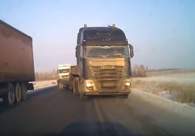 وكالات - الاقتصادي - تمكنت سيدة كانت تقود سيارتها على طريق يسير فى الاتجاهين بمدينة تيومين الروسية، من الموت بفارق سنتيمترات.