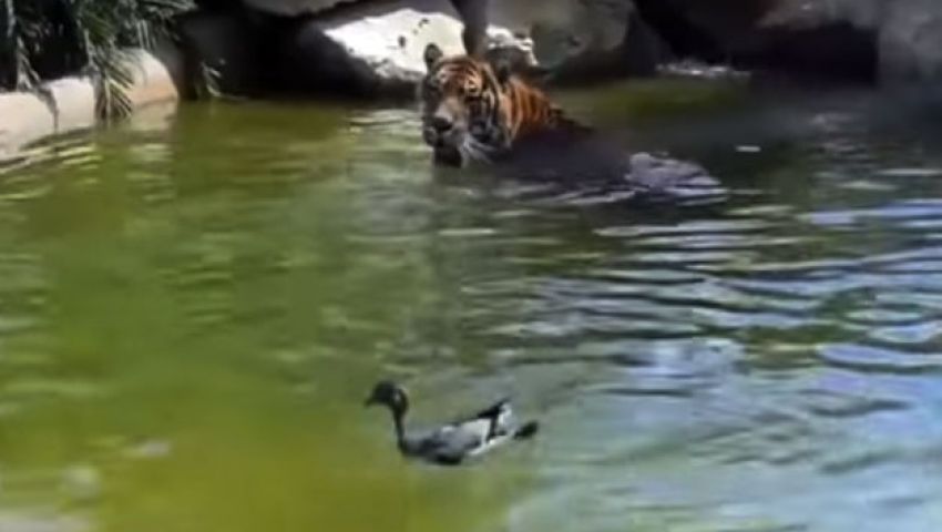بالفيديو: بطة تتغلب على نمر بشجاعتها
