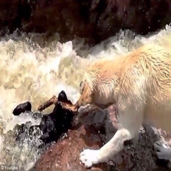 بالفيديو: كلب شجاع ينقذ صديقه من الغرق في نهر