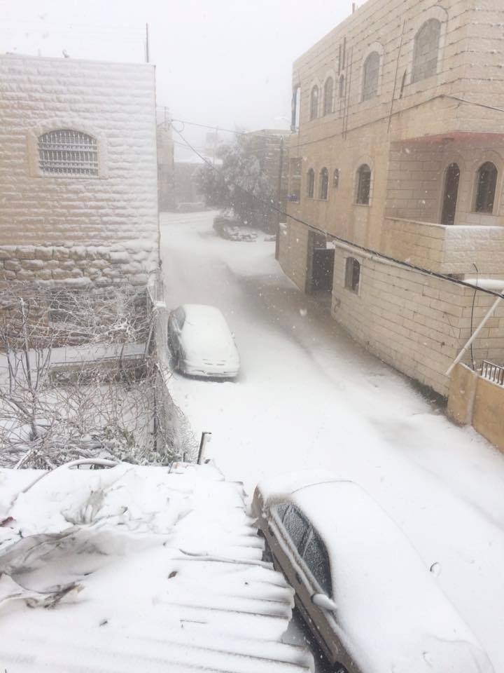 فيما لا تزال الثلوج تتساقط على جبال بيت لحم الجنوبية والتي يزيد ارتفاعها عن 900 متر، وخصوصا بلدة بيت فجار جنوب بيت لحم التي ترتفع عن سطح البحر 960 مترا، وذلك منذ ساعات الفجر الاولى.
