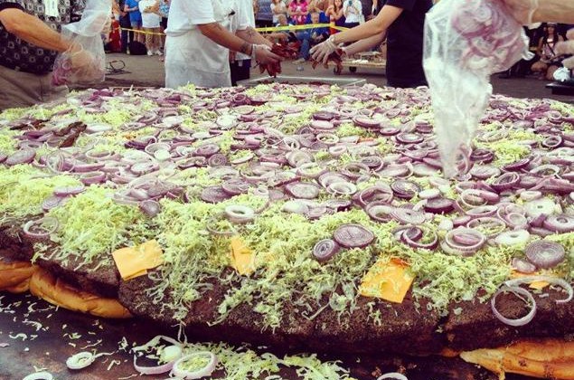 فعلى سبيل المثال حين حاولت شركة (Juicys Outlaw Grill) تحطيم رقم قياسي وإعداد 770 رطل من البرجر (317 كجم)، فقد فشلت المحاولة الأولية لأن الشركة لم تستطع طهي اللحم البقري جيدًا، وهو ما يعني أن شطائر البرجر بشكل عام لن تؤكل، حيث لم تستطع تلبية جميع شروط غينيس. لكنها بعد ذلك تمكنت من تحطيم الرقم القياسي، وبيع أكبر كمية تجارية من البرجر بـ 5000 دولار.