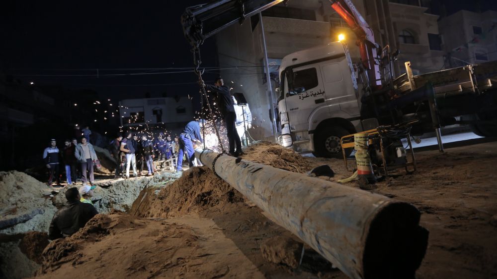 وبين أن طواقم بلدية غزة سارعت إلى المكان واستدعت الآليات الثقيلة من جرافات وجيترات ومضخات متنقلة وآليات مختلفة، وتم استبدال الخط القديم من نوع (UPVC) بآخر حديد بقطر 12 إنش، وتركيب الوصلات اللازمة عليه".