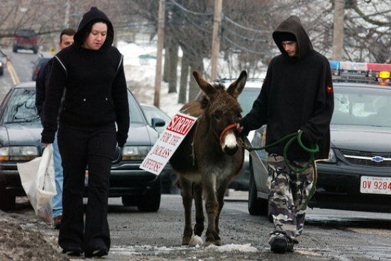 عرض القاضي الأميركي ديفيد هوستيتلر، على جيسون هاوسهولدر (23 عاماً)، وجون ستوكوم (21 عاماً)، خيارين من العقاب؛ لرميهما زجاجات البيرة على سيدة كانت داخل سيارتها، الأول الحبس 60 يوماً، أو التجول ساعة وسط المدينة، بعد وضع المكياج، وارتداء الفساتين، والشعر المستعار الخاص بالسيدات، واختار الشابان الحكم الثاني، والذي كان الغرض منه تلقينهما درساً في احترام النساء.
