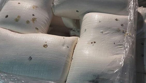 وأفاد بيان لإدارة العلاقات العامة والاعلام بالضابطة الجمركية، انه تم اتلاف الكمية المذكوره اعلاه بحضور جهات الاختصاص في وزارتي الصحة والاقتصاد الوطني، وذلك لعدم صلاحيتها للاستهلاك الادمي لوجود قوارض وحشرات بداخلها .
