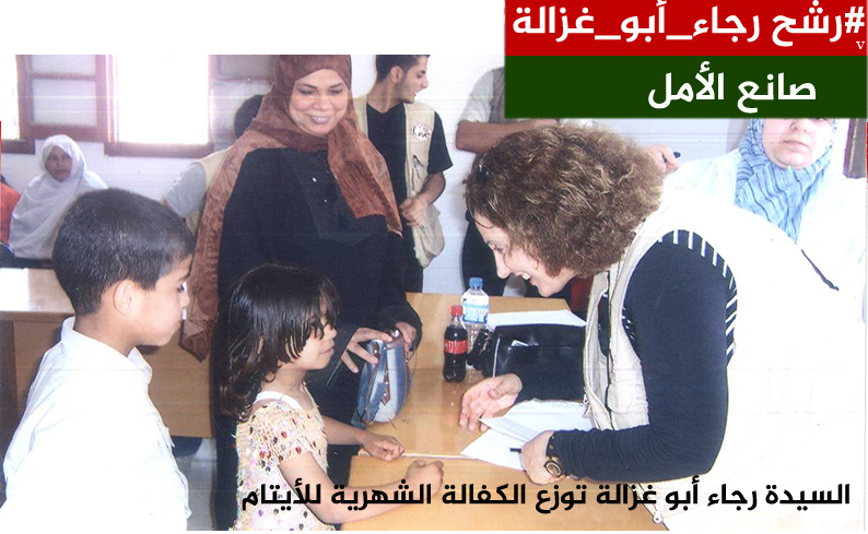 رام الله - الاقتصادي - رشحت جمعية عطاء فلسطين الخيرية مؤسستها ورئيس مجلس إداراتها السيدة رجاء أبو غزالة لجائزة صناع الأمل والتي أطلقها صاحب السمو الشيخ محمد بن راشد آل مكتوم، نائب رئيس الدولة رئيس مجلس الوزراء حاكم دبي. حيث تعتبر السيدة رجاء أبو غزالة من أوائل السيدات التي عملت في المجال الإنساني والتطوعي في فلسطين، حيث قامت بتأسيس جمعية جهود غزة التطوعية للإغاثة السريعة (عطاء غزة) في عام 2003، والتي اندمجت لاحقاً مع جمعية عطاء فلسطين التطوعية التي أنشأتها السيدة "أبو غزالة" في رام الله لتكون جمعية عطاء فلسطين الخيرية.