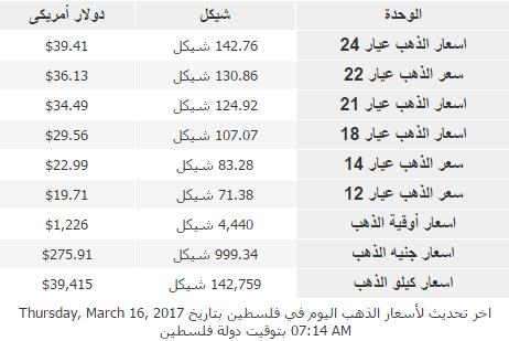 رام الله - الاقتصادي- وصل سعر غرام الذهب في السوق الفلسطينية لليوم الخميس للعيارات " 18 .21.22.24" على النحو التالي: -