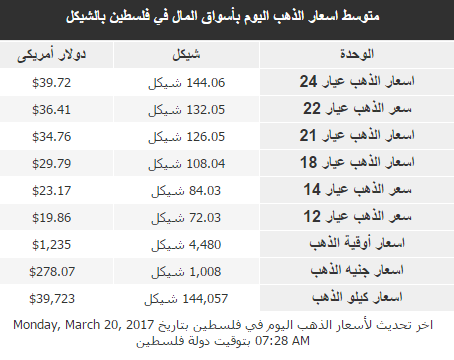 رام الله - الاقتصادي - جاء سعر غرام الذهب في السوق الفلسطينية لليوم الاثنين لعيارات 18.21.22.24 على النحو التالي: