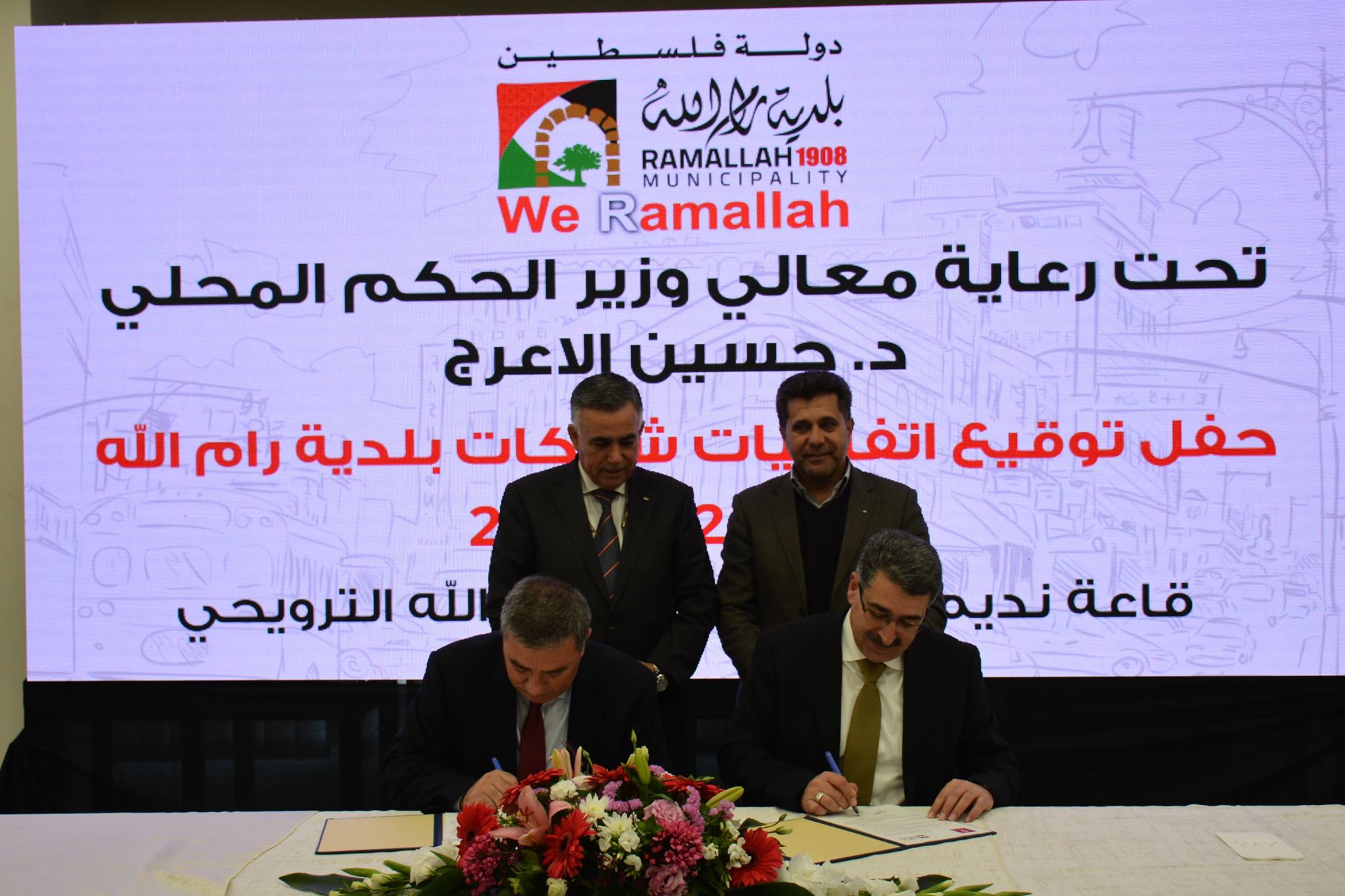 ووقع رئيس البلدية موسى حديد، الاتفاقيات مع ممثلي المؤسسات الشريكة بحضور وزير الحكم المحلي حسين الأعرج، ونائب محافظ رام الله والبيرة حمدان البرغوثي، وأعضاء المجلس البلدي وممثلين عن المؤسسات الشريكة.