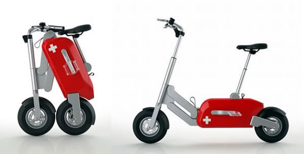 دراجة Swiss army الكهربائية ذات التصميم القابل للطي تحتوي على الكثير من الأدوات المفيدة والصغيرة، فهي تحتوي على سكين، مفك براغي، فتاحة زجاجات، ومنشار، ومصباح يدوي.