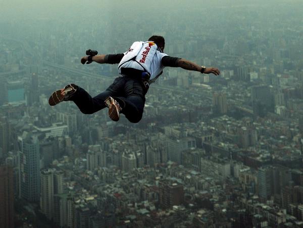 وقد سُمعت صرخات الذعر من عدة أشخاص حالما نفذ المغامر قفزته من أعلى البناء الشاهق. وسرعان ما تنفس شهود العيان الصعدان عندما فتح المغامر مظلته التي هبطت به بسلام على الأرض.