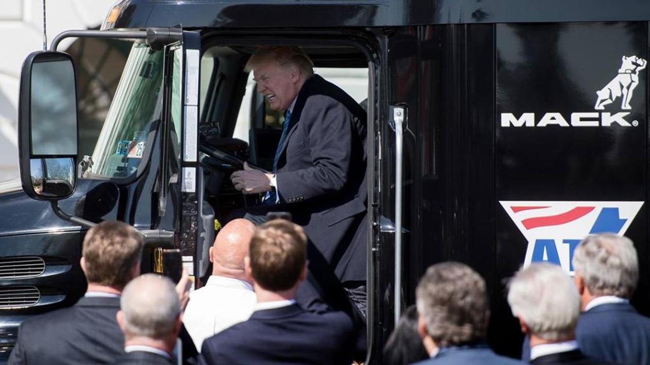 فعند استقباله نحو عشرين سائق شاحنة ورئيس شركة نقل، دبّ الحماس بترامب فاستغل الفرصة ليجلس وراء مقود شاحنة ثقيلة داخل فناء البيت الأبيض وأطلق العنان لأبواقها.