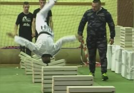 وحطم كريم اهمتساباهيتش من البوسنة، 20 كتلة خرسانية رأسه وسط ذهول الحاضرين.
