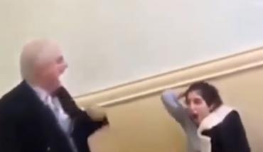 ووثق الفيديو، كيف اقترب الأستاذ من الطالبة، ثم فاجأها بقضم شعرها بفمه، وسحبها عالياً وملامح الدهشة والذهول مرتسمة على وجه الطالبة، بعد أن استفاقت من نومها، فيما دخل المعلم وزملاؤها في نوبة ضحك.