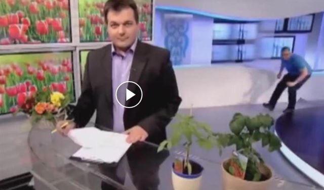 نشر موقع «لايف ليك» فيديو طريفًا لموقف محرج على الهواء، عندما اقتحم رجل أمن الأستوديو خلف المذيع المنهمك في تقديم الفقرة الصباحية، وحينما أدرك رجل الأمن أنه داخل الكادر ويظهر على الشاشة، انبطح أرضًا وزحف على الأرض، في محاولة لإخفاء نفسه عن المشاهدين، ولكن دون جدوى.