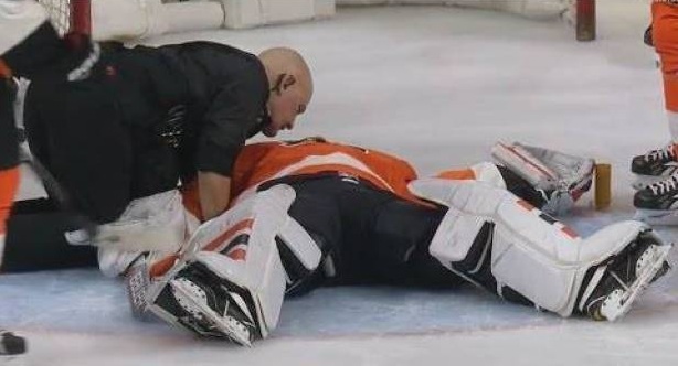 وكالات - الاقتصادي - تعرض حارس مرمى فريق "فلادلفيا فلايرز" لحادث مأساوي خلال مباراة هوكي ضد فريق "نيو جيرسي ديفيلز".
