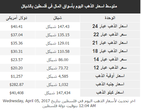 رام الله - الاقتصادي - جاء سعر غرام الذهب في السوق الفلسطينية اليوم الاربعاء لعيارات 18.21.22.24 على النحو التالي:-