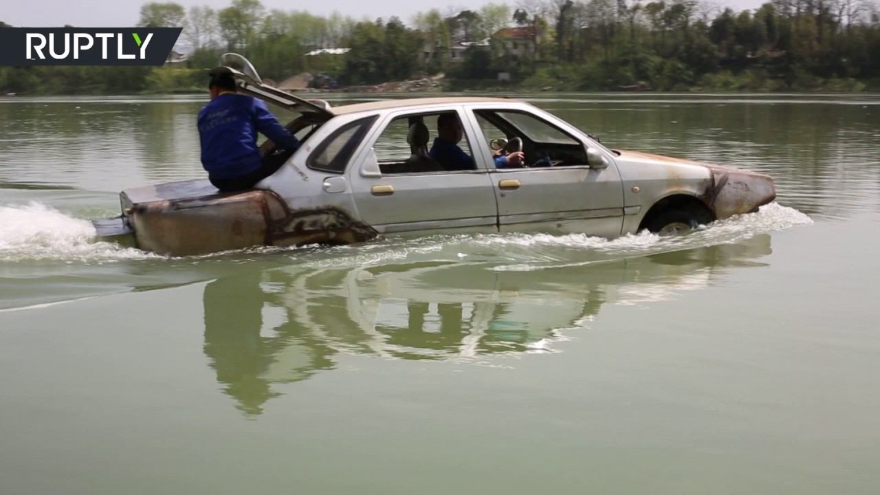 وكالات - الاقتصادي - يظهر مقطع الفيديو صيني يختبر سيارة برمائية صنعها بنفسه.
