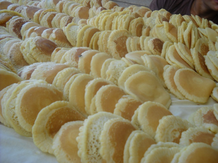 تحشى الأقراص ذات الحجم العادي عادة بالجبنة المحلاة أو بالجوز المطحون مع سكر وقرفة، أو بالفستق الحلبي. وهناك حشوات أقل شهرة مثل الحلاوة مع الصنوبر المقلي (وتسمى "حيلوزية" نسبة لمخترعها) أو الزبيب أو اللوز أو البندق أو الفول السوداني، ثم تطوى وتطبق أطرافها فتصبح نصف دائرية. هناك حشوة مشهورة في غزة وهي القشطة مخلوطة بجوز الهند المبشور والزبيب. وبعد الحشو والاغلاق يضاف القليل من الزبدة وتوضع في فرن حرارة متوسطة حتى تحمر قليلا ثم يضاف اليها الشراب (القطر) المحلى أو العسل وتؤكل